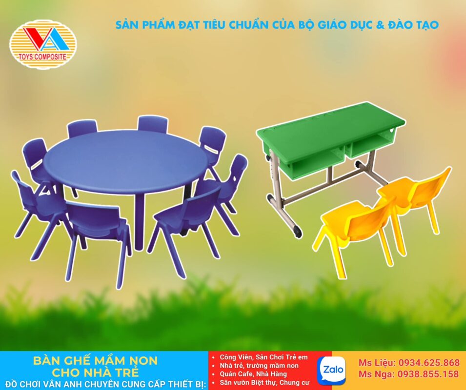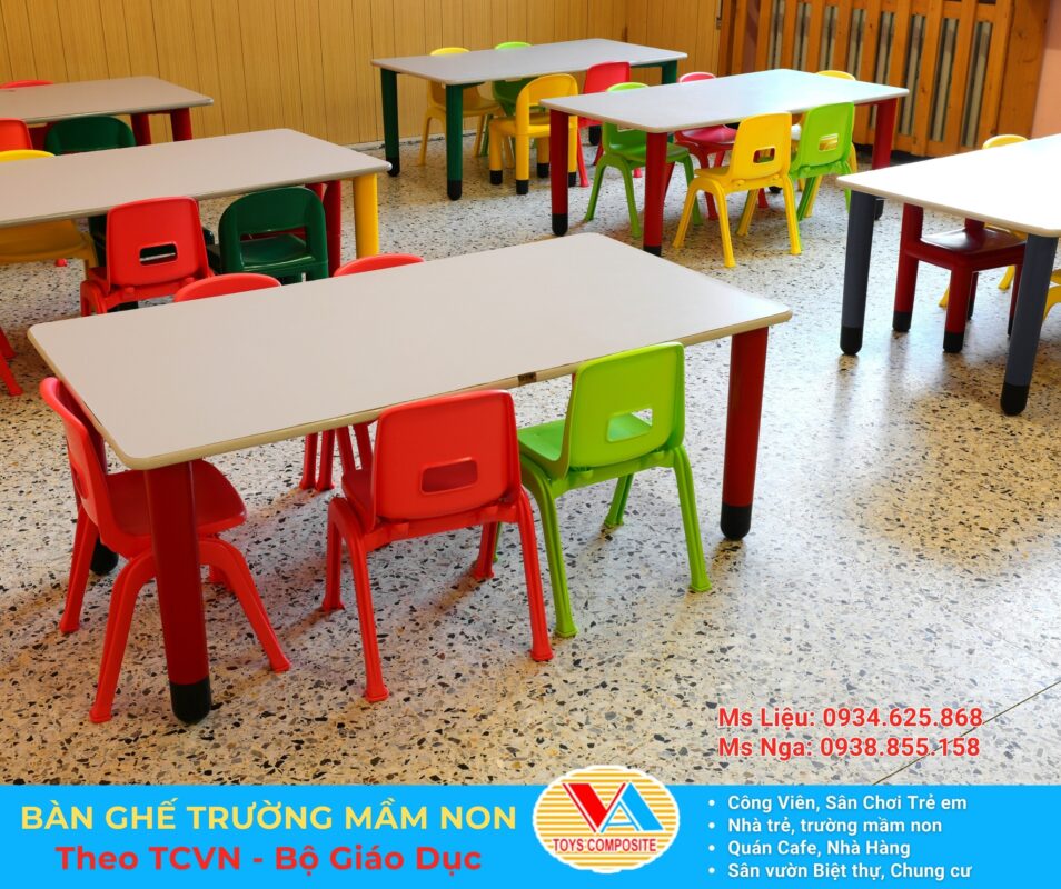 Những vật liệu này giúp bàn ghế có thể chịu được tác động mạnh từ trẻ nhỏ và sử dụng lâu dài trong môi trường lớp học.