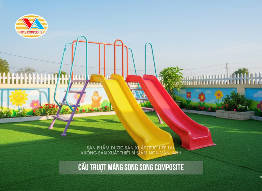 Hai máng trượt song song cho nhiều bé cùng chơi, giúp tăng tính tương tác và rèn luyện vận động.