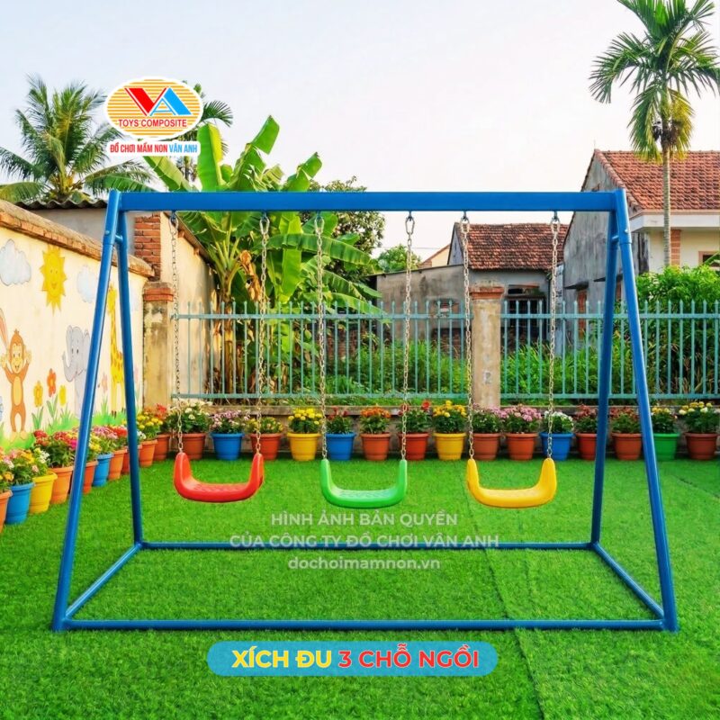 Trong các khu vui chơi trẻ em, việc bổ sung thêm những thiết bị đơn giản nhưng thu hút luôn là yếu tố quan trọng giúp không gian trở nên sinh động hơn. Xích đu mầm non 3 chỗ ngồi là một trong những thiết bị được nhiều trường mầm non, quán cafe sân vườn, khu vui chơi trẻ em và homestay lựa chọn.